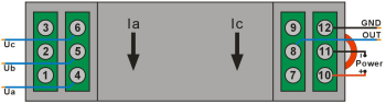 Terminals 4、5 and 6 for voltage input; Terminals 10 and 11 are for power supply. Terminals 8 and 12 are for output; Terminals 1、2、3、7 and 9 is NC( No Connection).