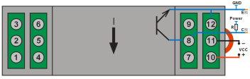Current Hole-thru Input: Terminals 8 and 12are for output; Terminal 8 to wire thepositive end of output, Terminal 12 to wirethe negative end of the output; Terminals 10 and 11are for power supply.